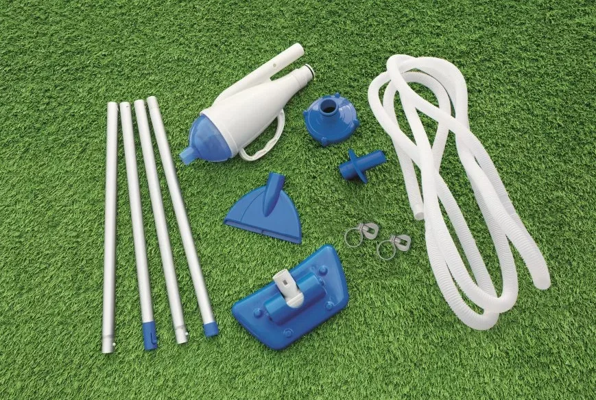Набор для чистки бассейна – это эффективное решение, которое сэкономит ваше время и силы. Прибор подключается к насосу с мощностью от 3 тысяч литров в час.