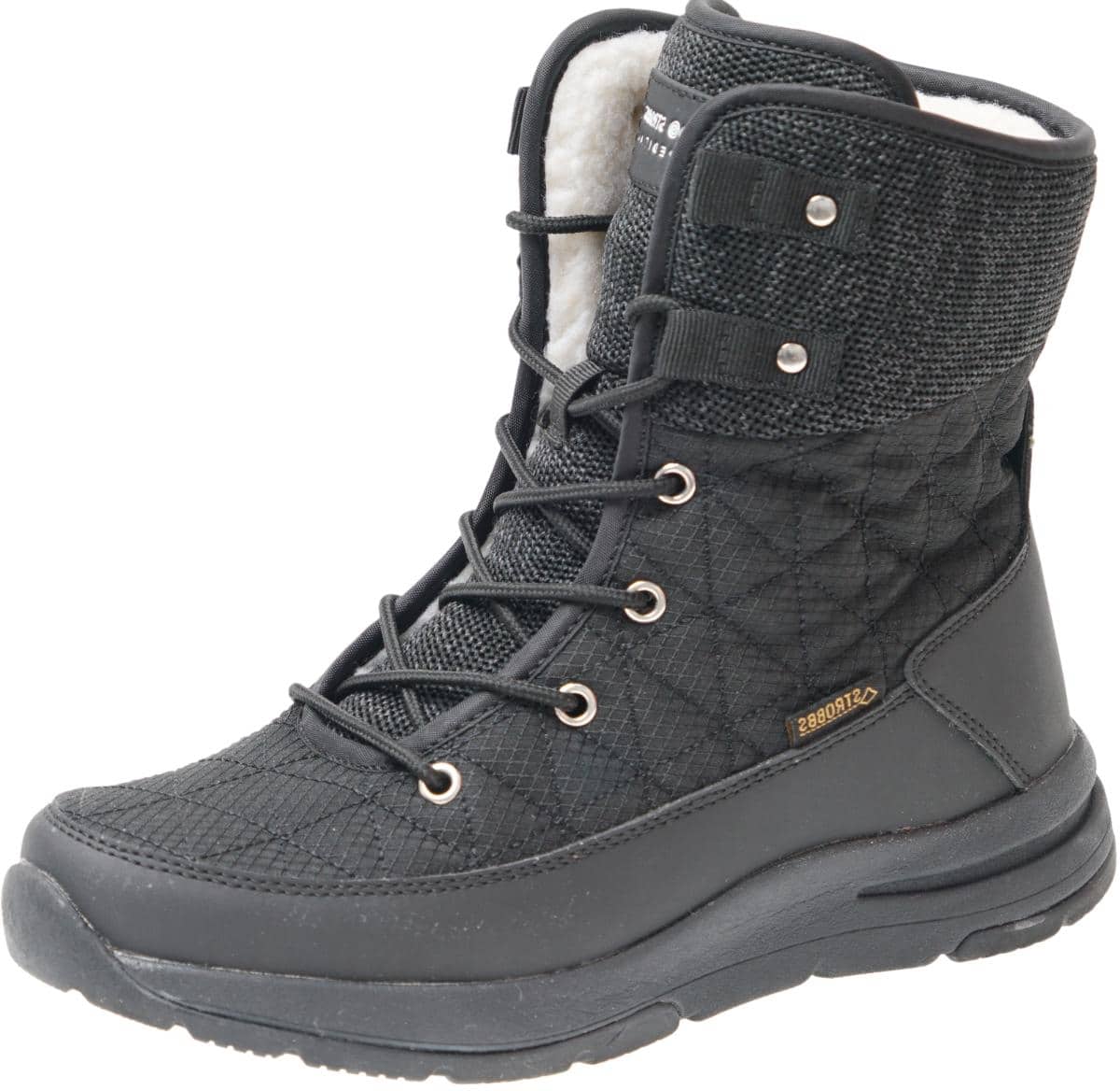 Высокие женские ботинки от бренда Strobbs станут отличным вариантом для заснеженной зимы и активного отдыха на природе. Благодаря своему современному дизайну, ботинки легко сочетать с любыми элементами гардероба. Теплые и качественные материалы обеспечат комфорт на протяжение всего дня ношения. Ботинки изготовлены из плотной синтетической кожи, они обладают хорошей износостойкостью и сопротивлением к разрывам. Высокий голеностоп поддерживает ногу по бокам и защищает от попадания снега. Язычок изготовлен из перфорированного текстиля для улучшенной вентиляции. Внутренний утеплитель из искусственной шерсти не впитывает лишней влаги, отводя ее на поверхность, сохраняя все свои теплоизоляционные свойства даже при повышенной влажности. Подошва из пластичной резины не грубеет на морозе и сохраняя свои амортизационные свойства. Рельефный протектор имеет оптимальное сцепление на обледенелых и заснеженных дорогах. Мягкая утепленная стелька не впитывает лишнюю влагу и обеспечивает повышенный комфорт во время длительной ходьбы. Модель выполнена в черном цвете, который не требует постоянного ухода и скрывает большую часть загрязнений. Несмотря на свою объемность, ботинки довольно легкие и удобные для ежедневной носки.Особенности и преимущества: