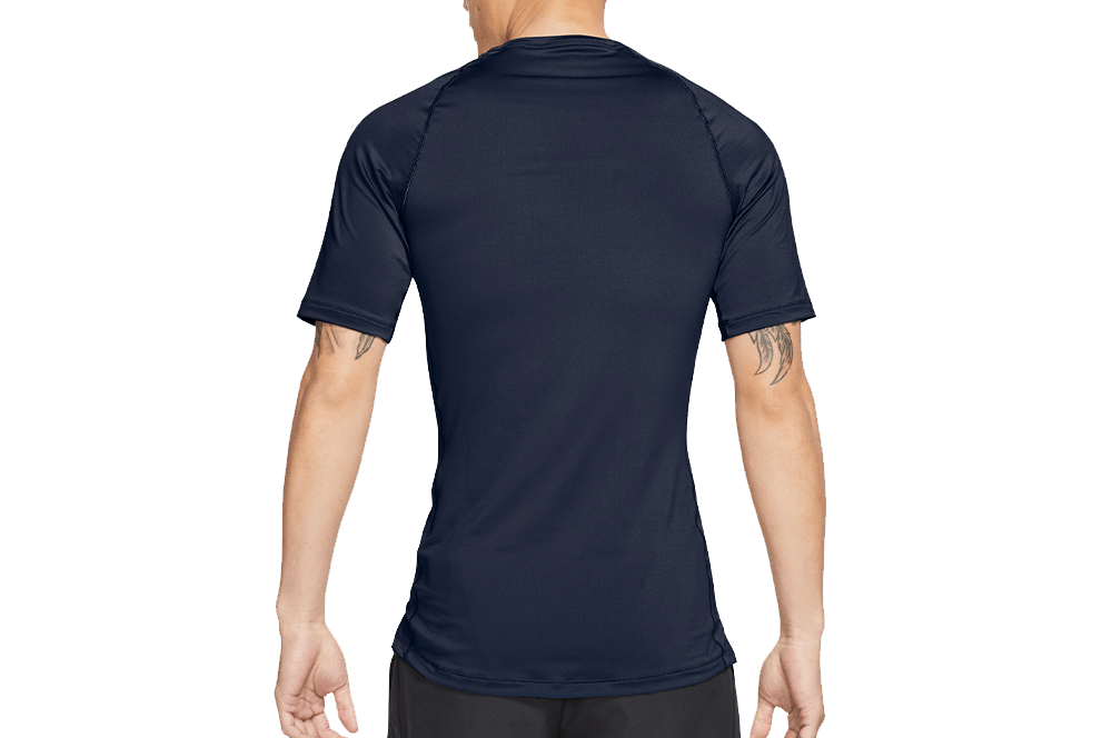 Спортивная футболка от бренда Nike идеально подходит для интенсивных кардио и силовых тренировок. Футболка с плотной посадкой повторяет изгибы тела, подчеркивает фигуру и не сковывает движения во время тренировок. Благодаря чему, футболку можно использовать в качестве дополнительного нижнего слоя вместе с тренировочной толстовкой. Модель выполнена в темно-синей расцветке, которая легко сочетается с любыми вариантами низа и подходит каждому мужчине. Основная ткань с технологией Dri-FIT отводит излишки влаги от кожи, сохраняя ее сухой. Перфорированные вставки по бокам обеспечивают дополнительный воздухообмен. Плоские швы сводят к минимуму раздражение, вызываемое трением при беге или выполнении упражнений. Футболка хорошо тянется и не теряет форму после стирки. Контрастный логотип бренда на груди завершает фирменный дизайн. В такой футболке вы сможете тренироваться и покорять новые вершины с ощущением легкости и комфорта.Особенности и преимущества:
