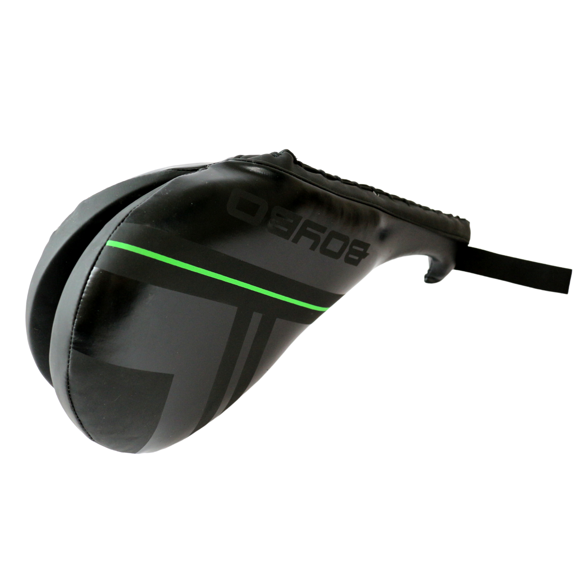 Лапа-ракетка тхэквондо BoyBo двойная B-Series – предназначена для отработки четких и хлесткий ударов ногами. За счет небольшого размера лапа-ракетка тхэквондо вырабатывает в спортсменах точность удара и координацию. Эффект хлопка позволяет оценивать "качество" удара. Ракетка выполнена из прочной искусственной кожи Flexy с мягким слоем пены внутри, это позволяет тренироваться как взрослым спортсменам, так детям и подросткам. Удобная рукоятка ракетки для тхэквондо лапы упрощает работу с ракеткой. Оснащена ремешком для удобного захвата и фиксации.Особенности и преимущества:
