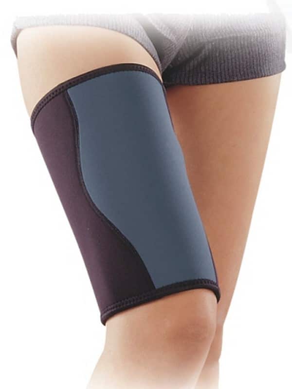 Суппорт бедра изготовлен из износостойкого высококачественного дышащего материала, который позволяет сохранять тепло, своевременно отводит влагу и гарантирует надежную поддержу, не препятствуя движению. Суппортер предотвращает риск получения растяжений во время занятий и способствует облегчению болей в мышцах и суставах. Повязка-фиксатор подходит для длительной носки, а также для повседневного ношения.Особенности и преимущества: